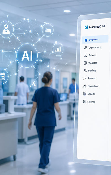 ResourceChief on tekoälypohjainen resurssienhallintaratkaisu, joka on suunniteltu terveydenhuollon organisaatioille parantamaan toiminnan tehokkuutta ja ennakoimaan palvelukysyntää. Se tarjoaa johdolle ja osastoille selkeän, dataan perustuvan näkymän resurssien käyttöön eri yksiköiden välillä, mahdollistaen paremman resurssien koordinoinnin ja päätöksenteon.